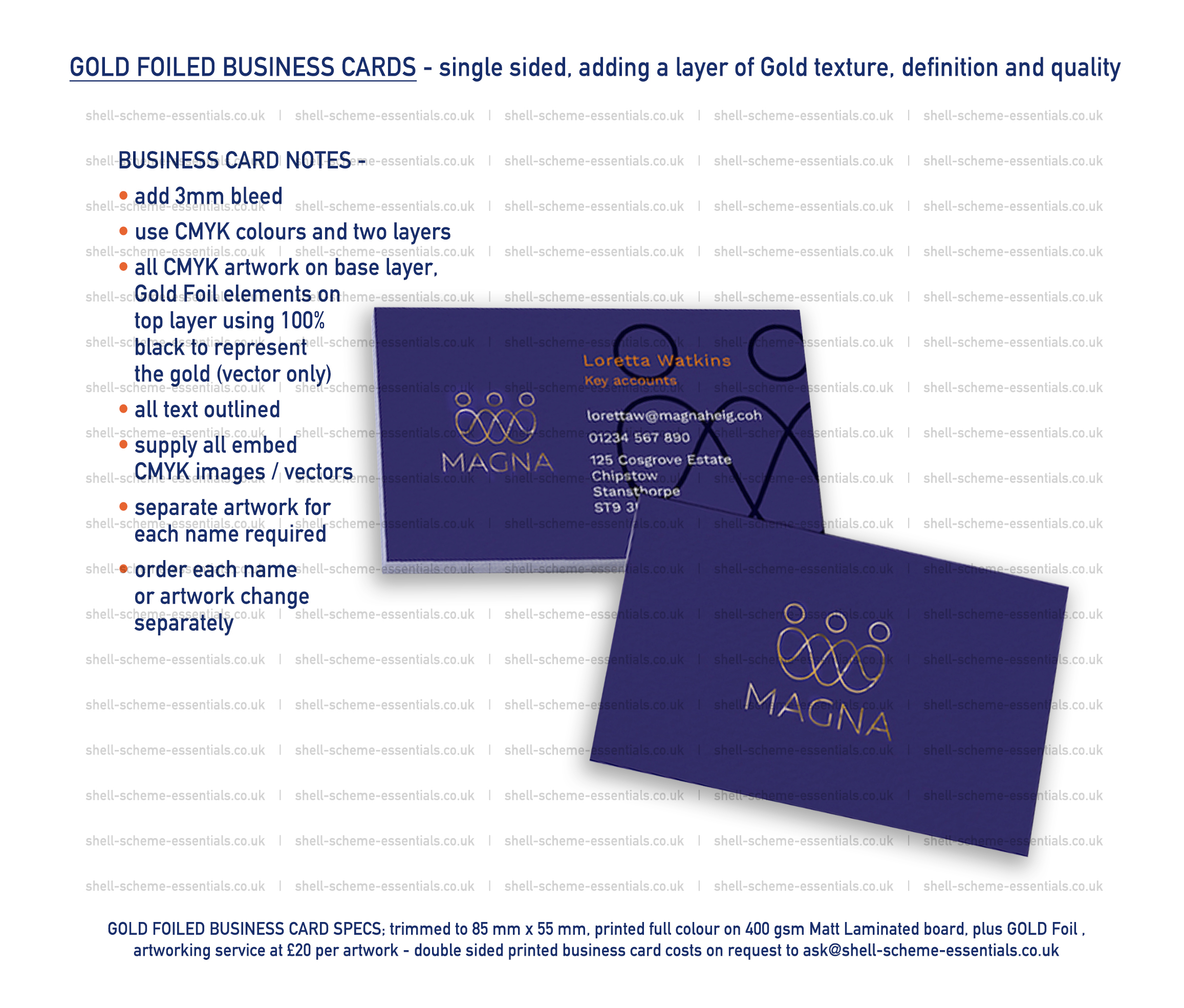 Trimmed to 85 mm x 55 mm – separate online order required for each business card type /name or artwork change.
