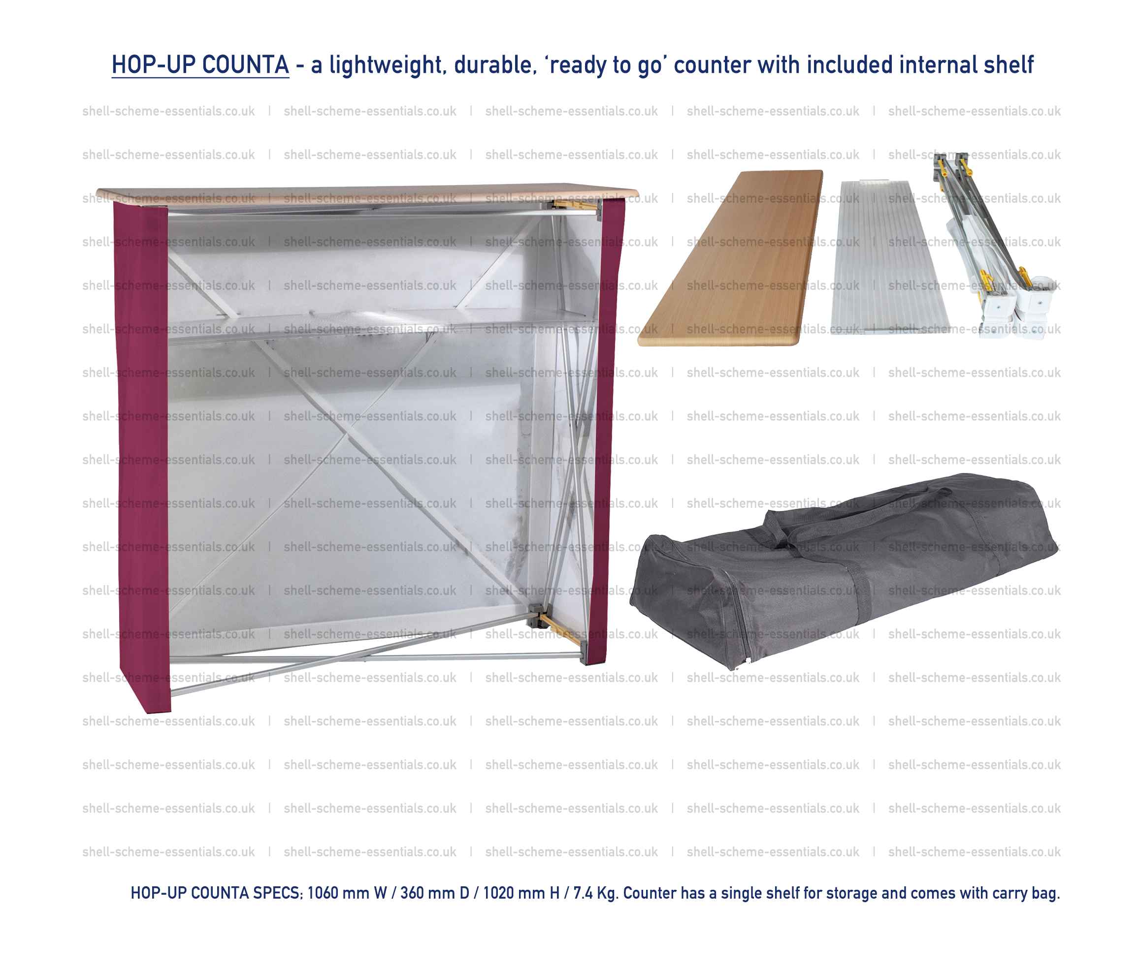The Hop-up Counta is a smart, lightweight portable counter designed for events, exhibitions, retail, and reception use.
